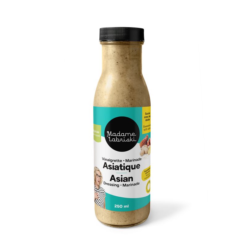 This Asian-style dressing/marinade adds a creamy sesame and ginger flavor to all your salads and grilled dishes. Fans of Asian fusion cuisine will be delighted. The addition of date puree brings a certain smoothness to the palate and helps to reduce acidity in a healthier way.